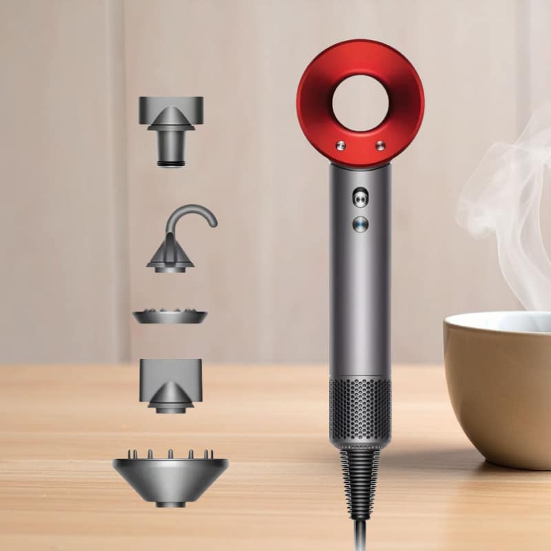 Der Dyson Supersonic Haartrockner in Anthrazit und Anthrazit / Rot kombiniert hohe Funktionalität mit einem kreativen Designansatz und ist ideal für alle, die ein leistungsstarkes, pflegendes und optisch ausdrucksstarkes Stylinggerät suchen.