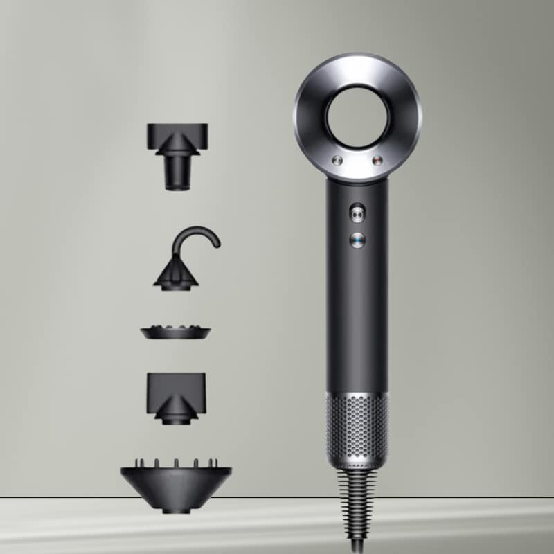 Der Dyson Supersonic Haartrockner in Anthrazit und Schwarz / Nickel kombiniert hohe Funktionalität mit einem kreativen Designansatz und ist ideal für alle, die ein leistungsstarkes, pflegendes und optisch ausdrucksstarkes Stylinggerät suchen.